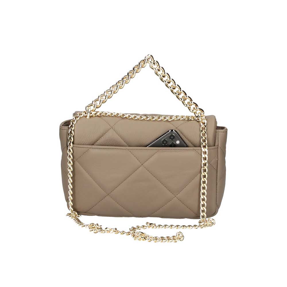 Δερμάτινη χιαστί τσάντα καπιτονέ, Vania, Dark Taupe, Iris Bags