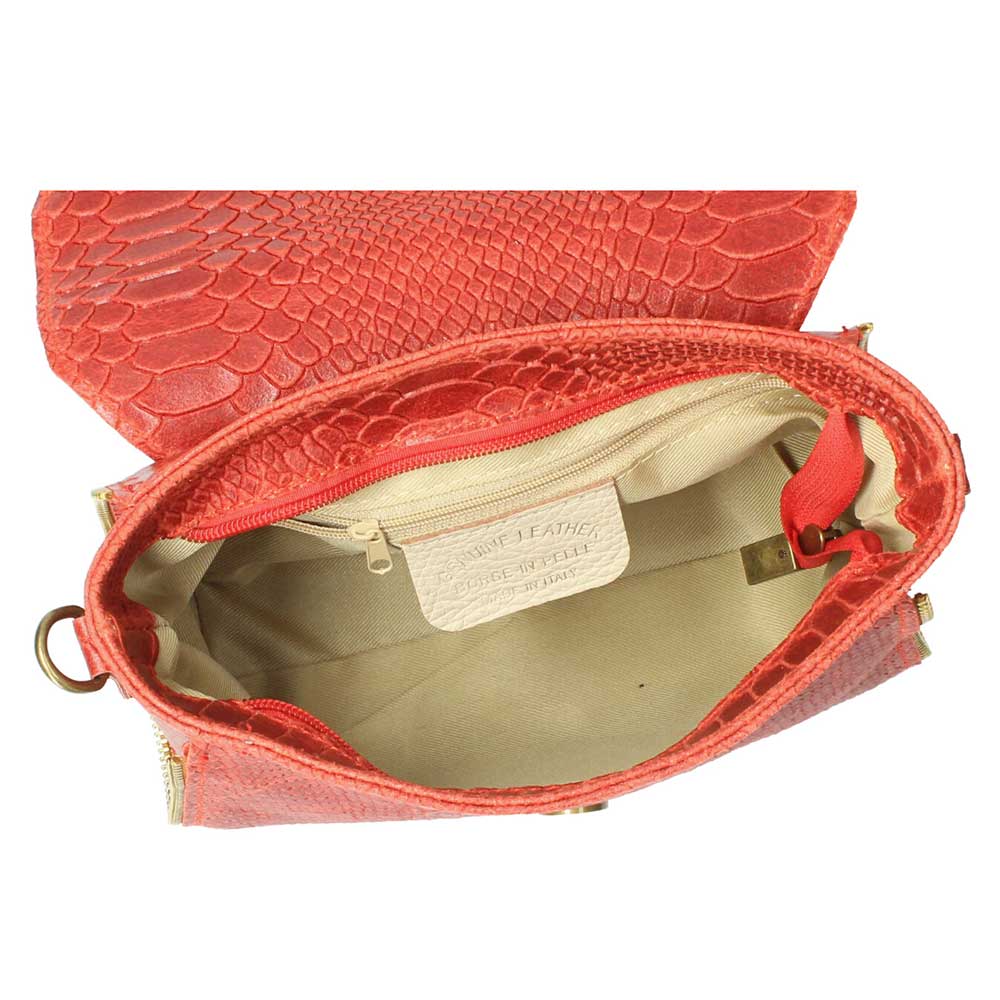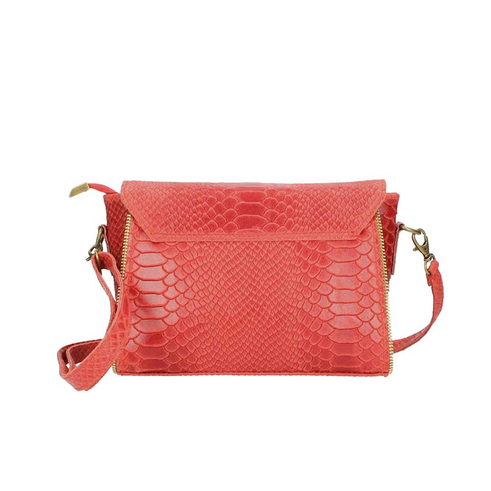 Δερμάτινη χιαστί τσάντα με snakeprint, Nita, Κόκκινο, Iris Bags