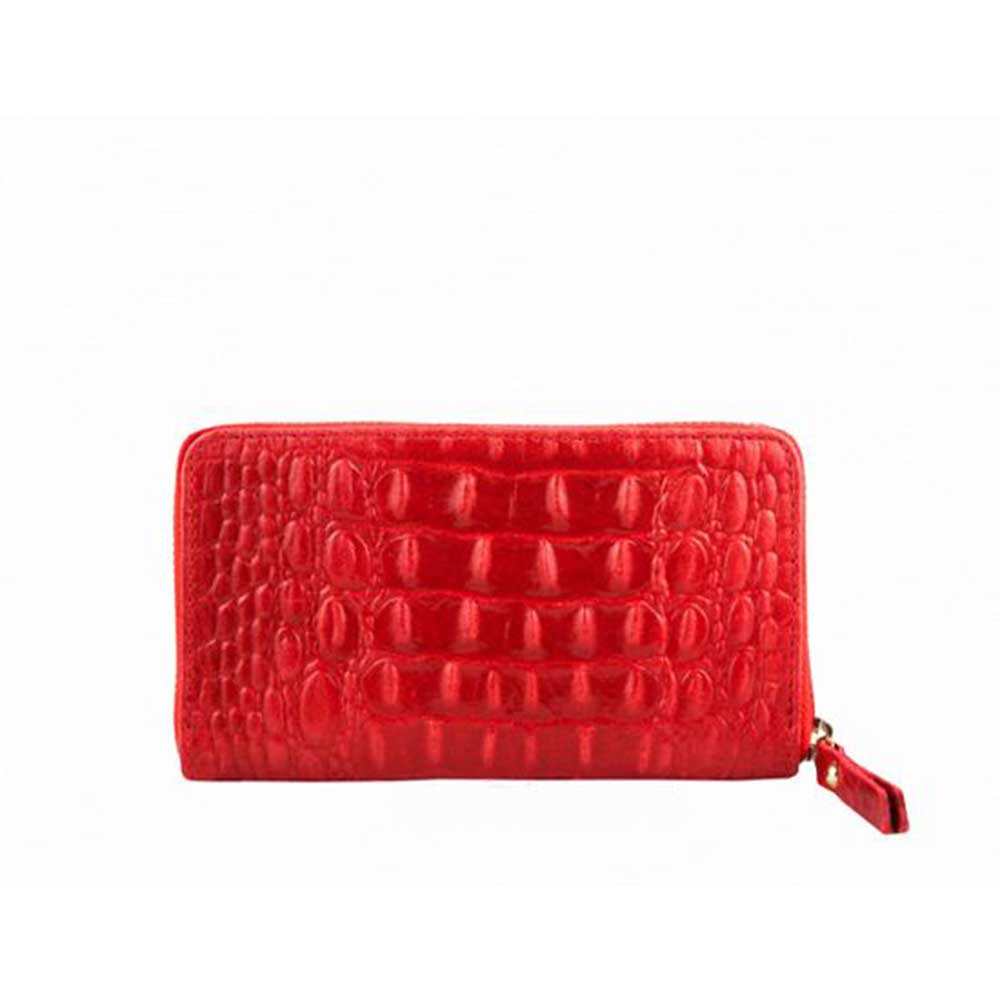 Δερμάτινο γυναικείο πορτοφόλι κροκό, Pina, Κόκκινο, Iris Bags