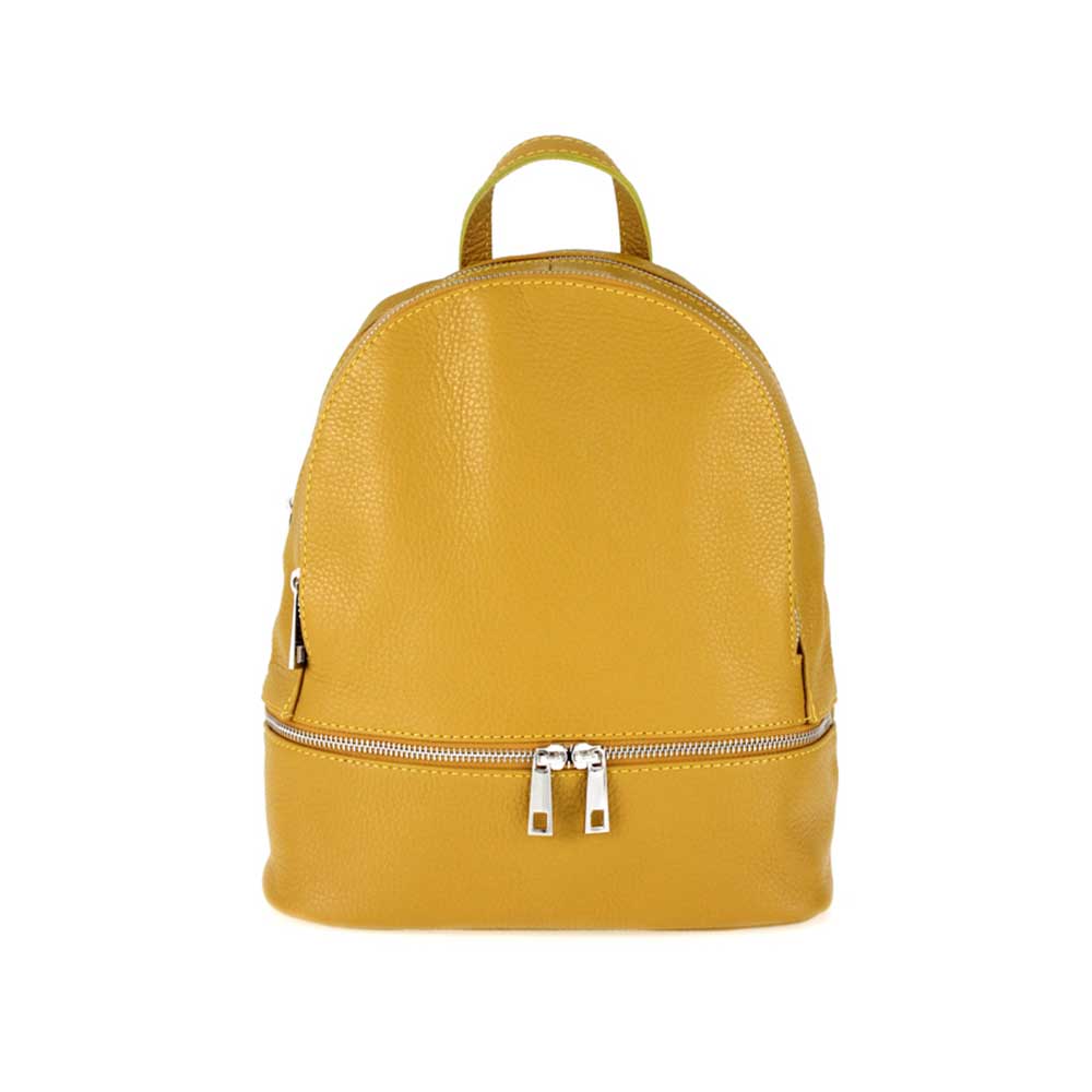 Σακίδιο από δέρμα τύπου martellato, Zaira, Μουσταρδί, Iris Bags