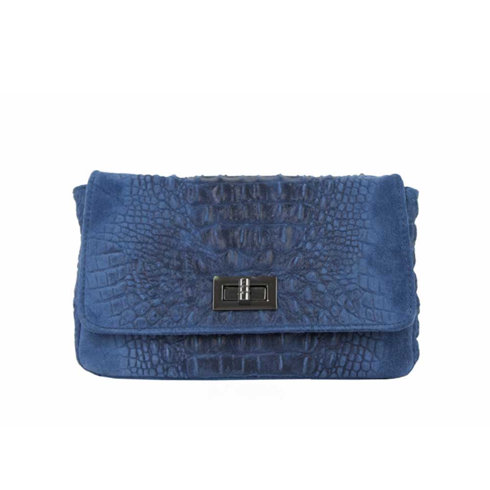 Χιαστί τσάντα με σουέτ δέρμα και κροκό σχέδιο, Miranda, Jeans, Iris Bags