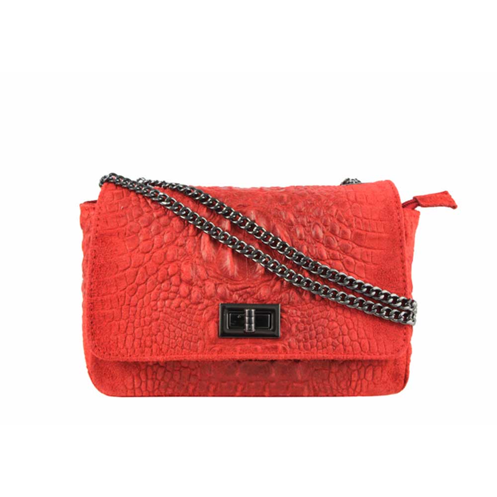 Χιαστί τσάντα με σουέτ δέρμα και κροκό σχέδιο, Miranda, Κόκκινο, Iris Bags
