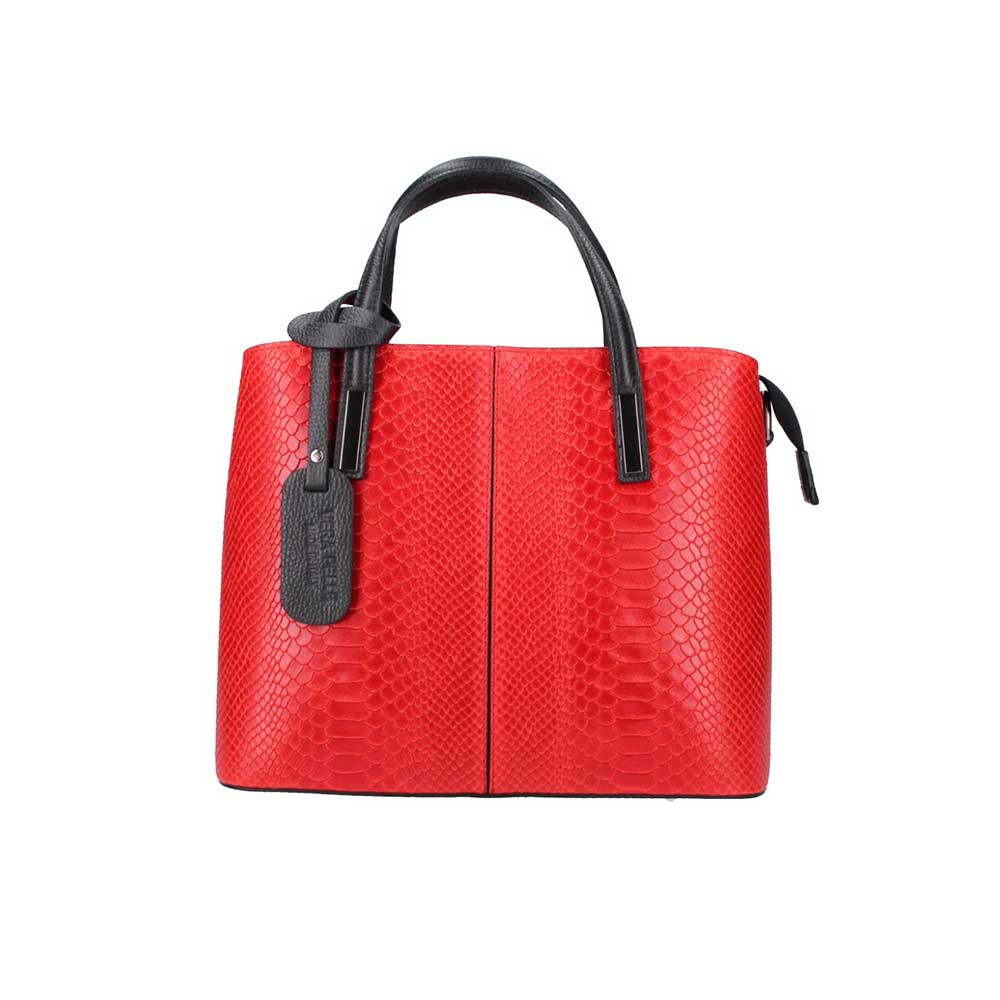 Δερμάτινη τσάντα χειρός με snakeprint, Merle, Κόκκινο, Iris Bags