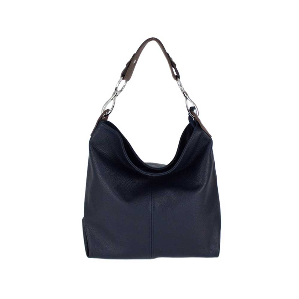 Τσάντα ώμου από δέρμα τύπου dollaro, Shaila, Μπλε σκούρο, Iris Bags