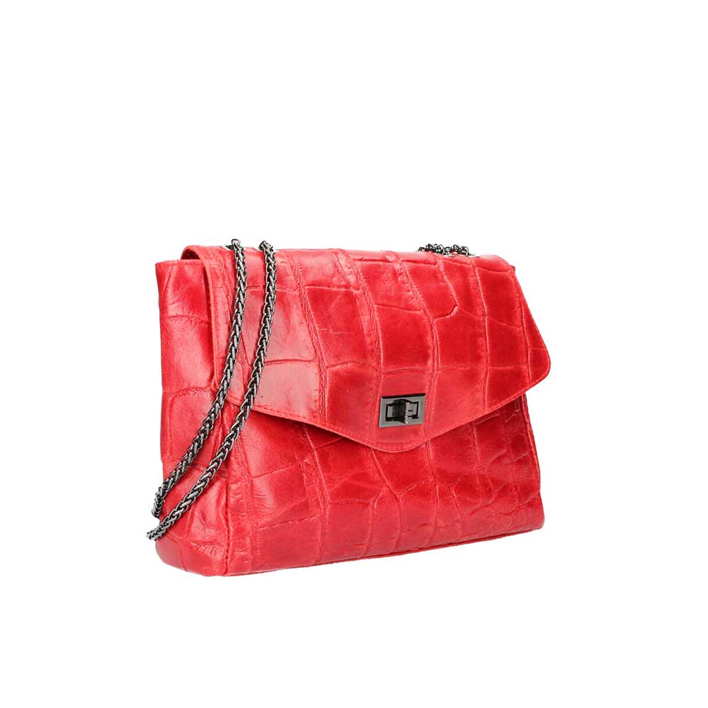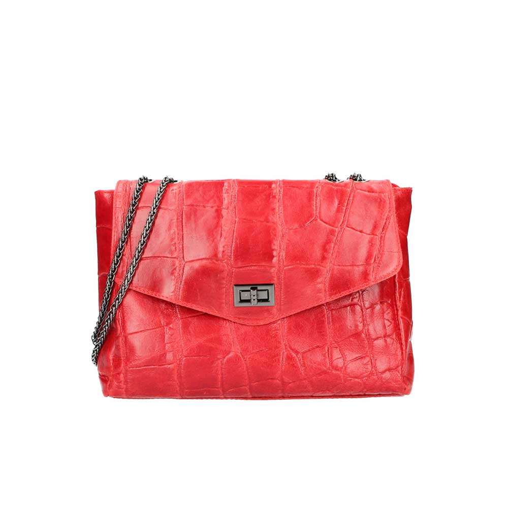 Δερμάτινη χιαστί τσάντα κροκό, Ezma, Κόκκινο, Iris Bags
